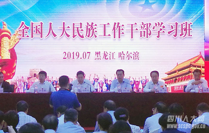7月9日至11日,全国人大民族委员会在黑龙江省哈尔滨市举办第二十二期全国人大民族工作干部培训班,受全国人大民委主任委员白春礼委托,全国人大民委副主任委员丹珠昂奔在开班式讲话。省人大民族宗教委员会副主任委员郑蓉参加会议,并在大会上作了《围绕中心 服务大局 做好新时代人大民族工作》的交流发言。