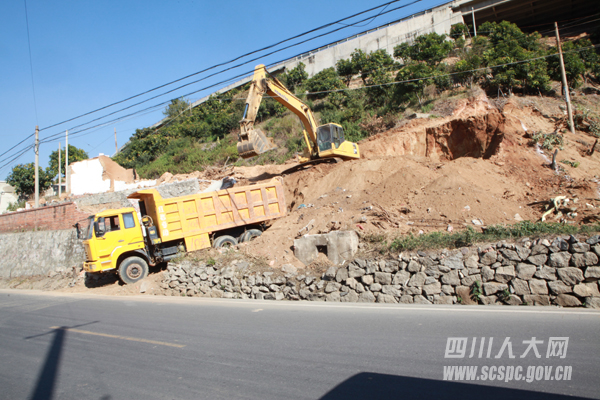 倪方云的挖掘机和装载机正在为村民平地基
