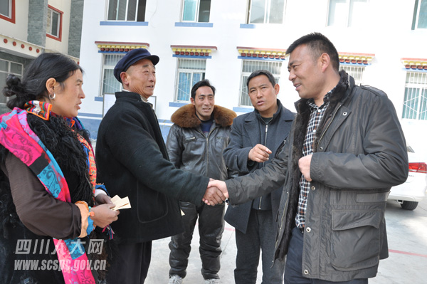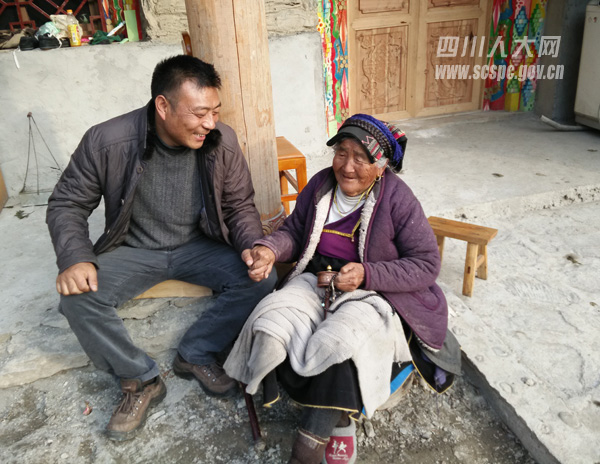 三郎俄木是个壮实的藏家汉子,看似个粗线条的人,其实他内心非常细腻,心里一直惦记着村里和敬老院的老人们以及全县各乡镇的特困户。“每个人都会老,老人们的今天就是我们的明天。善待老人,其实就是善待我们自己”三郎俄木朴实无华的语言总是让人感到很实在。每年他都把担任村委会主任所得的报酬一分不留全部都捐献给村自办的老年协会作为活动基金。黑水的冬天天寒地冻,昼夜温差大,夜间温度达-10°及以下。县敬老院的老人们大部分都是孤寡老人,三郎俄木总担心他们被冻着,希望他们能穿得更暖和一些,去年冬天他自费2万余元给县敬老院的每位老人添置过冬衣服,给敬老院的老人们送去贴心的温暖。他说在他当省人大代表的这几年期间,他每年冬天都会给老人们添置衣服或被褥。敬老院的老人们都亲切地称他“三郎儿子”。除此之外,每年春节前夕三郎俄木还要自费1万元看望本村困难户和其他乡镇的特困户,每年看望3-4个乡镇的特困户,带去一个省人大代表的问候。他计划在担任省人大代表的5年期间,要看望全县17个乡镇的所有特困群众。目前,三郎俄木已经走访和慰问了沙石多、芦花、红岩、麻窝、双溜索、木苏9个乡镇的23户特困户。他说“看到大家快乐,我就更开心。快乐别人也就是快乐自己”