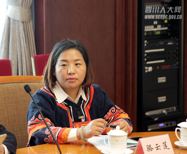 图为骆云莲代表出席十二届全国人大五次会议四川代表团审议时的情形。