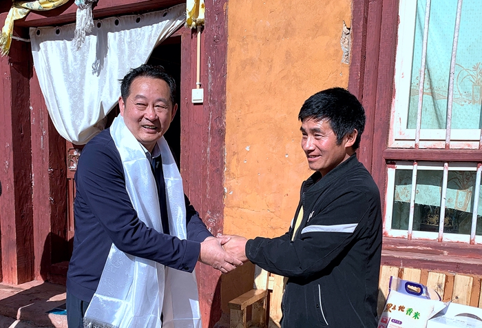 此次赴甘孜州考察,邓刚率基金会向甘孜县和巴塘县捐送了一批爱心物资。