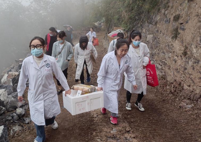 医护人员徒步上山