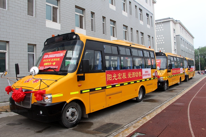 通过视察调研,蔡岗了解到部分学校因缺乏校车使得学生上下学存在安全隐患后,立即将3辆崭新的校车分别捐赠给河清镇迎新小学、黄土镇小学、花荄镇调元路幼儿园。