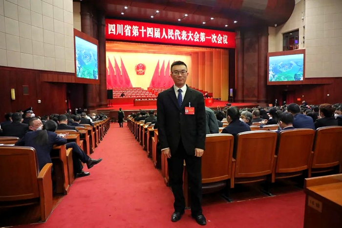 2023年1月11日,四川省十四届人大一次会议召开,郝成勇身着正装,佩戴出席证,成为了全过程人民民主的参与者、见证者、监督者。