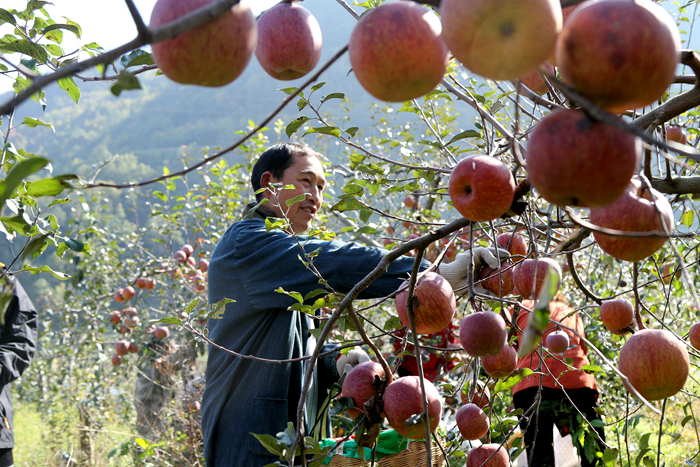 又是一年丰收季,硕果累累满枝头。走进晒经村,漫山遍野都是红彤彤的大苹果,处处弥漫着浓郁的芬芳,红艳硕大、色泽诱人的苹果压弯了枝头,这些苹果鼓足了果农的口袋,也为果农带来了幸福的生活。