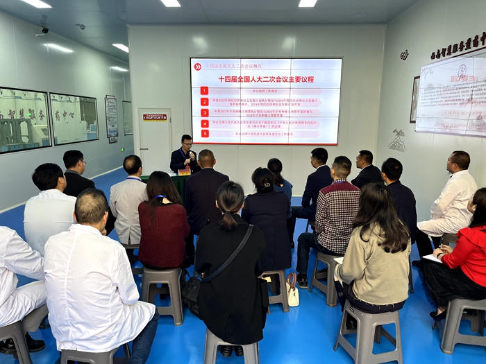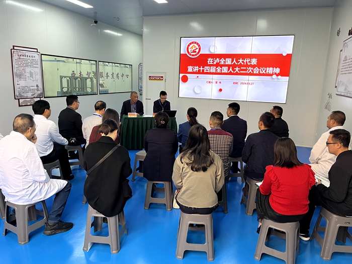 3月27日,全国人大代表董伟、西南医科大学发展规划处处长深入江阳区江南科技产业园人大代表联络站宣讲十四届全国人大二次会议精神,还实地参观调研了天植药业企业,让“两会”精神赋能医药产业新发展。省、市、区、镇四级基层人大代表及天植药业员工、群众代表20余人参加活动。