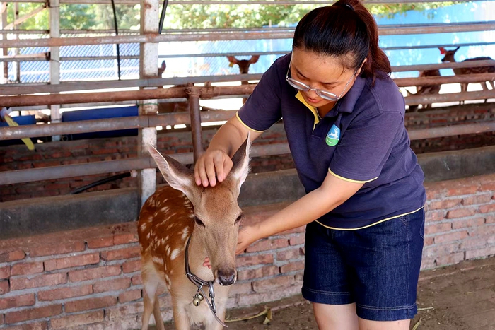 带着这份决心,何苗网购了梅花鹿养殖相关书籍,开启了她的创业之路。穿着闷热的长筒水鞋,割草、拌料、洁舍、防疫……田间地头、圈舍、家庭,“三点一线”成了常态,日复一日,起早贪黑,何苗慢慢熟悉了梅花鹿的生活习性,掌握了投料、防病、割茸、繁育等技术,从一个“门外汉”逐渐成长为行家里手。同时,踊跃参加各类创新创业大赛并多次获奖,扩大了鹿场知名度,拓宽了鹿产品销路,原本濒临倒闭的鹿场逐渐扭亏为盈并不断发展壮大。2019年,农场申请了“卢何苗”商标,鹿舍扩建至5000㎡,存栏养鹿120余头,年销售总额达90余万元。
