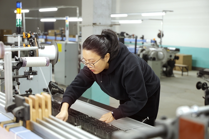 “2002年刚进厂时,我连织机都摸不熟,现在成了管理者。”王丽回忆起20多年前的往事,眼神里闪着光。王丽在车间一干就是20多年,从操作工到技术骨干再到现在的管理人员,她见证了工厂从传统手工到现代化生产的蜕变。“以前我们靠经验,现在要靠数据、靠设备。”她谈起最近刚引进的第三代织机,“保守估计,现在织造效率提高了30%,次品率降低了15%。”