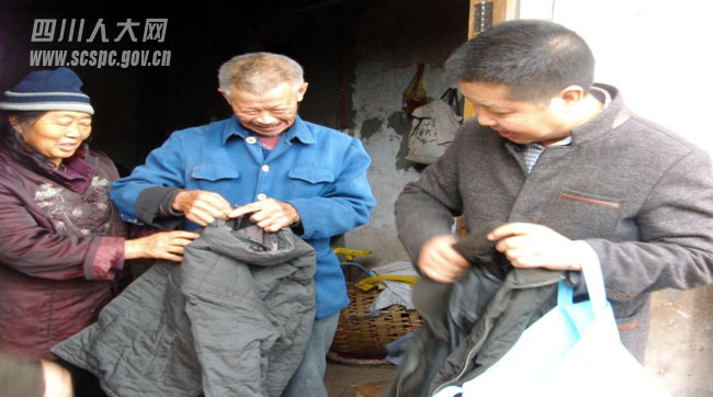 市人大代表吴贵华给帮扶贫困户送衣服