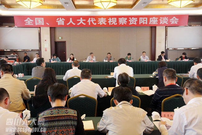 座谈会上,代表们围绕资阳发展进行交流发言。代表们对资阳发展取得的成绩给予充分肯定和高度评价,认为资阳生态环境优良、区位优势明显、产业基础扎实,当前面临国家实施“一带一路”战略、成都天府国际机场、临空经济区建设等诸多机遇,资阳自身优势和发展潜力加速凸显,发展前景美好。特别是资阳各级干部始终保持昂扬向上的精神状态,主动谋发展、促发展,干劲十足,值得点赞。代表们还结合资阳的具体实际,围绕打赢脱贫攻坚战、大力发展轨道交通制造业、航空食品产业、康养产业,抓好临空经济区规划建设,推进成资一体化发展、打造名扬天下的安岳石刻景区、再创全国双拥模范城等方面提出意见建议,希望资阳认真贯彻落实习近平总书记系列重要讲话精神,统筹抓好稳增长促改革调结构惠民生防风险各项工作,奋力开创改革发展各项事业新局面。