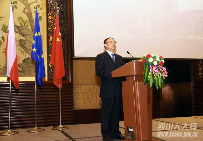 陈文华在致辞中说,波兰是共建“一带一路”的重要国家,近年来四川与波兰交流发展成果丰硕,波兰已成为四川在中东欧地区最大的经贸伙伴,2017年川波进出口总额突破2.3亿美元,同比增长74%。成都始发直达波兰罗兹的班列已成为运行时间最短、运行最为稳定的中欧班列,累计开行数量占全国35个城市开行班列总数的1/3。相信四川与波兰将继续携手共进,实现互利共赢。
