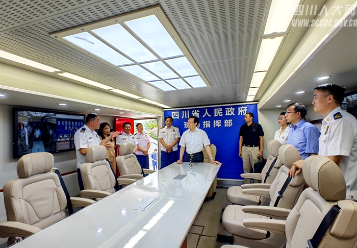 登上红色的消防通信移动车,四川省人民政府现场指挥部几个大字映入眼帘。
