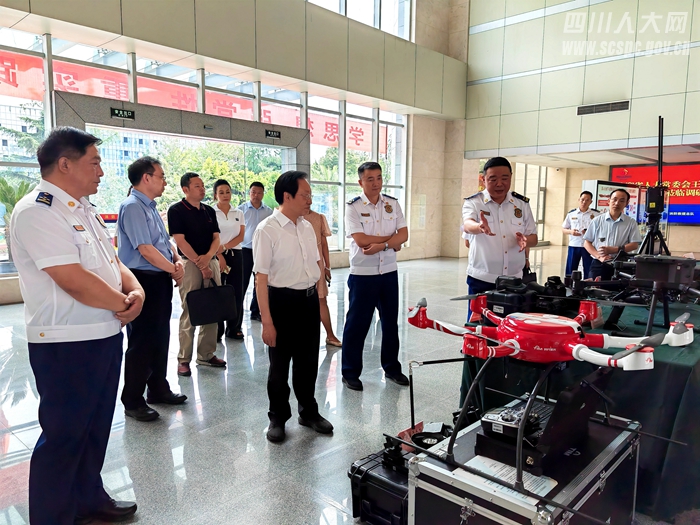 王菲带领调研组就全省消防工作情况及修订省消防条例的有关情况进行调研。调研组仔细了解大运会消防救援安保工作情况和消防工作中的重点难点问题,详细询问消防车、卫星电话、公网对讲机、无人机和抛投、照明、喊话、双光等吊舱设备的使用情况,现场参与消防应急演习,听取了省消防救援总队工作汇报。