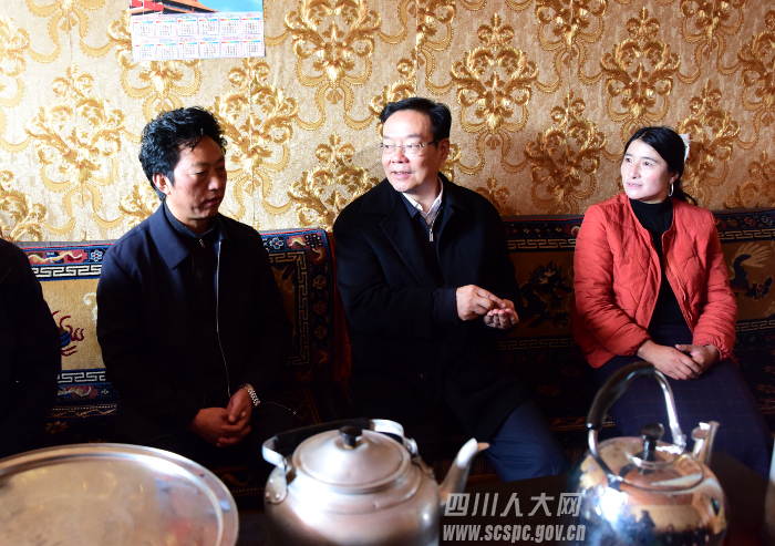 在海拔3100米的十里回族乡郭学寨村,检查组与村组干部、驻村工作组、贫困户代表召开坝坝会,拉家常,详细了解对《条例》和精准扶贫工作的知晓度、满意度,并特别关注了今年拟脱贫的玛啟孝、尤戈两家低保贫困户的脱贫情况。2017年女儿因病去世,家里欠债10多万元,玛啟孝没有被悲痛击倒,通过在村里的牦牛养殖合作社放牛,贷款4万元购入3头小牛,年收入达到了2万余元。检查组会后还特地前往玛啟孝家探访,侯晓春赞扬玛啟孝是一位坚强的父亲,诚信的藏族汉子,勉励他坚定信心,凭借勤劳的双手,很快还清债务,过上幸福生活。他叮嘱当地干部要尽心帮助藏族同胞,这是精准扶贫、民族团结的成果,也是给不了解,甚至抹黑藏区的言论一个鲜活有力的回应。