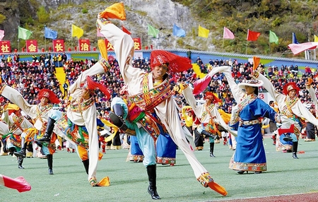 丹珠昂奔说,60年来,特别是改革开放以来,在党中央、国务院的亲切关怀下,在四川省委、省政府的正确领导下,甘孜州委、州政府团结带领全州各族人民,坚持走中国特色、藏区特点的发展道路,取得了经济社会建设、民主法制建设、精神文明建设和党的建设等各项事业的辉煌成就,经济实力明显增强、政治局势更加稳定、社会事业全面发展、人民群众生活水平显著提高。今日的甘孜藏族自治州正在奋力推进跨越发展和长治久安的伟大征程上阔步前进,处处呈现出一派生机勃勃、欣欣向荣的美好景象。随着西部大开发战略的新一轮推进和中央藏区工作会议精神的全面落实,我们坚信,甘孜州委、州政府一定能够团结带领全州各族人民把握机遇、戮力同心,继续发扬“顽强拼搏、感恩奋进”的甘孜精神,用辛勤与坚韧,智慧与汗水谱写甘孜发展进步、人民美好生活的历史新篇章。(致辞全文另发)