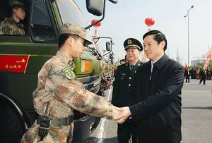 车队出发后,刘奇葆、蒋巨峰、李崇禧还与参与帐篷运输任务的志愿者代表亲切握手,感谢他们的辛勤劳动和无私奉献。