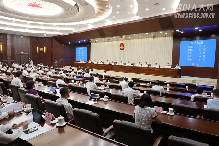 会议表决通过了《四川省通用航空条例》《四川省市辖区、不设区的市人民代表大会常务委员会街道工作委员会工作条例》《四川省人民代表大会常务委员会关于修改〈四川省《中华人民共和国台湾同胞投资保护法》实施办法〉的决定》,表决通过了四川省人民代表大会常务委员会关于批准《成都市客运出租汽车管理条例》《成都市公共厕所管理条例》《自贡市物业管理条例》《自贡市畜禽养殖污染防治条例》《攀枝花市文明行为促进条例》《攀枝花市城市市容和环境卫生管理条例》《泸州市海绵城市建设管理条例》《德阳市大气污染防治条例》《内江市甜城湖保护条例》《达州市物业管理条例》《雅安市人民代表大会常务委员会关于修改〈雅安市青衣江流域水环境保护条例〉的决定》《甘孜藏族自治州传统村落保护与利用条例》的决定,表决通过了《四川省人民代表大会常务委员会关于批准四川省2021年省级决算的决议》《四川省第十三届人民代表大会常务委员会关于四川省第十四届人民代表大会代表名额分配和选举问题的决定》《四川省第十三届人民代表大会常务委员会代表资格审查委员会关于个别代表的代表资格的报告》《四川省人民代表大会常务委员会关于接受尧斯丹辞去四川省人民政府副省长职务的决定》和任免案,决定任命田庆盈、胡云为四川省人民政府副省长。会议表决通过了《四川省人民代表大会常务委员会关于罢免王波第十三届全国人民代表大会代表职务的决议》,报十三届全国人大常委会备案、公告。