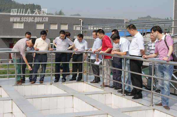 执法检查组在阆中市给排水公司治水车间查看疫病防治情况