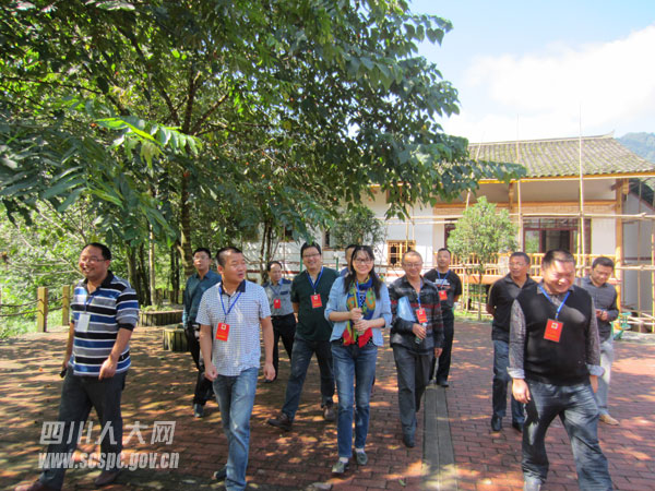 在农房灾后恢复重建现场,代表们先后深入民建彝族乡大坪山彝族同胞灾后重建聚居点、塔子山生态茶园、附城乡南罗坝打锣坪新村建设点、龙苍沟镇周坪美丽新村建设点进行视察。所到之处,代表们深入新建的农房、重建农户家中、生态茶园实地查看,向施工人员了解农房重建进度和存在问题、重建农户的生产生活情况,并在生态茶园里听取茶农介绍茶叶的栽种、销售情况。