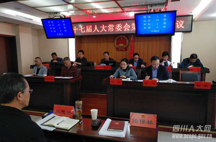 “本次会议应到常委会组成人员39人,实到32人。县人民政府《关于办理县城地区学校规划建设专项工作报告审议意见的情况报告》得满意票1票,不满意票29票,弃权票2票;《关于办理<中华人民共和国中小企业促进法>执法检查报告及其审议意见的情况报告》得满意票11票,不满意票20票,弃权票1票。两个报告满意票均未超过全体组成人员半数,测评结果为不满意。”10月29日,南部县十七届人大常委会第十七次会议上,当主持人、县人大常委会主任胡修云宣布满意度测评结果时,全场一片哗然。