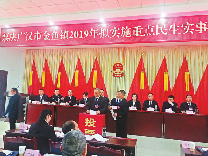 新举措  广汉市金鱼镇十九届人大五次会议正在对该镇2019年拟实施重点民生实事项目进行票决。