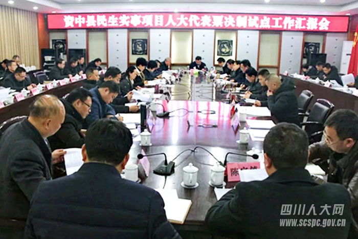2018年9月省人大常委会决定开展民生实事项目人大代表票决制试点工作以来,资中县作为全省3个县级试点之一,积极探索建立“党委领导、人大主导、政府负责、代表票决、群众参与”的工作机制,采取前期准备、征集初定、审议票决、监督评估“四个阶段”和制度制定、宣传动员,项目征集、项目初定,项目审议、项目票决,项目监督、项目评估“八个环节”工作法,形成了一套符合法律规定、试点要求、资中实际的民生实事项目人大代表票决制工作体系。