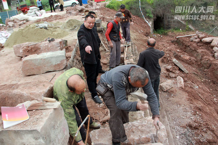 4月2日,山洞岩村危桥改造现场,工人们正在用条石垒起桥基,安居镇人大代表王维在现场一边监督工程质量,一边叮嘱工人要注意安全,现场一派忙碌的景象。村民王清明称,这座桥的修建时间久远,平时是附近两个村上千人出行的必经之路,去年汛期时桥基垮塌成为危桥,行人走在上面担惊受怕,汽车根本不敢上桥,严重影响了村民的生产生活。