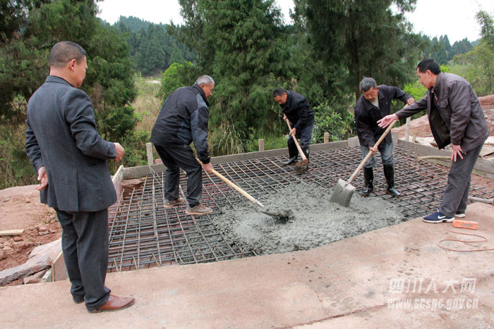 在红岩嘴村码口道路扩建工程现场,部分公路缺口已浇筑混凝土,工人在另一个缺口处捆扎钢筋;镇人大代表吴军明一边在现场指导,一边忍不住拿起铁锹铲起商混帮忙,“这条路有500多米需要扩建修补,这都四月份了,三千多人要走这条路,这里产业又多,生猪、西瓜、白菜都要运出去,必须赶在汛期来临之前做好,也好让大家的东西运出去卖个好价钱!”