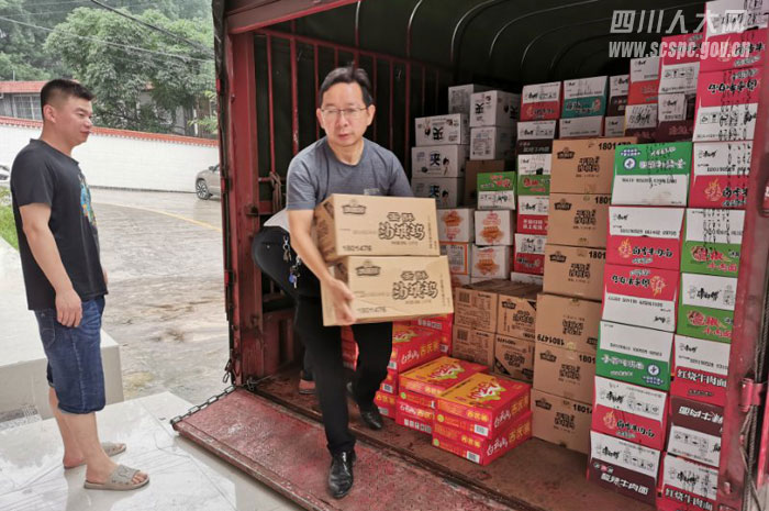 长宁县花滩镇人大代表搬运救灾物资