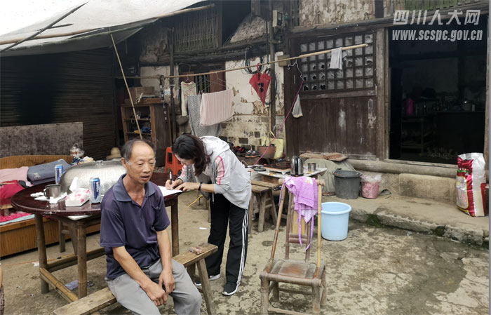 长宁县人大机关干部(左2) 走访排查房屋受损情况