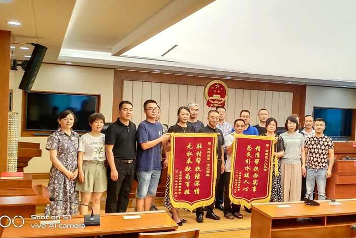 近日,雅安市雨城区草坝镇太坪村党总支书记杨大忠将写有“精准帮扶办实事 为民引水暖人心”“驻村帮扶结深情 无私奉献为百姓”的两面锦旗送到了雨城区人大常委会机关。“我们村再也不愁吃水难了。这面锦旗代表了太坪村全体村民向雨城人大常委会机关和驻村工作队多年辛勤付出的深深谢意。”杨大忠说。