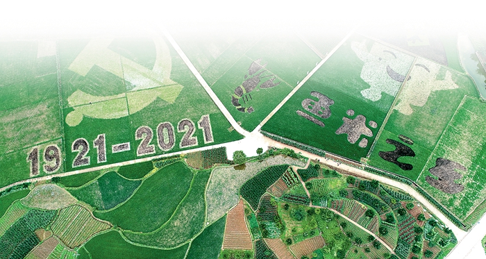 走进美丽乡村建设项目现场,一片由党徽、米仓和庆祝建党100周年3个部分组合而成的“百年华诞”彩色稻田图画映入眼帘。这是斗笠村群众为了感谢党的好政策、庆祝建党100周年,在实施改造后的400亩稻田上自发设计种植的。