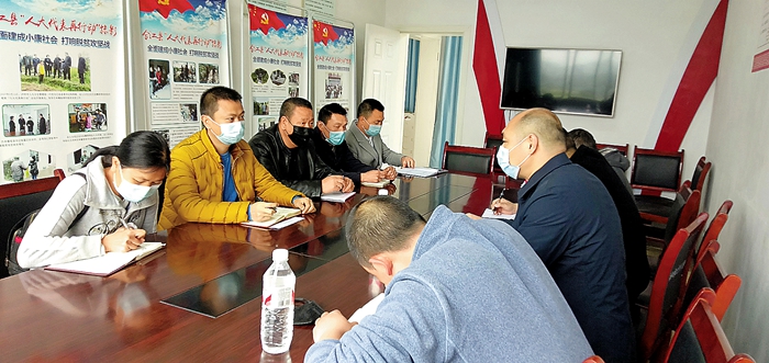 图为人大代表等和村民代表讨论酝酿初选项目。