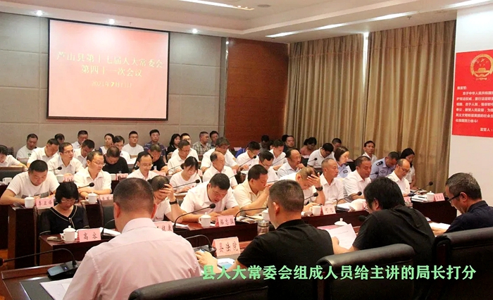 7月13日,芦山县人大常委会的会议室里,26名常委会组成人员在测评表上填写着。他们在给县林业局局长高世华对《中华人民共和国森林法》的授课讲解进行打分。