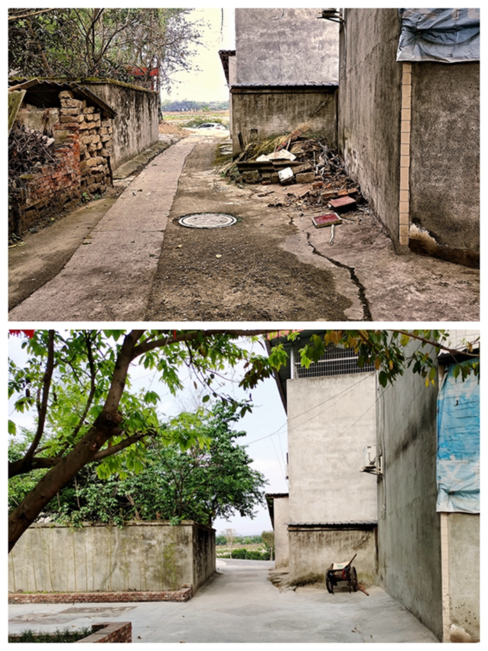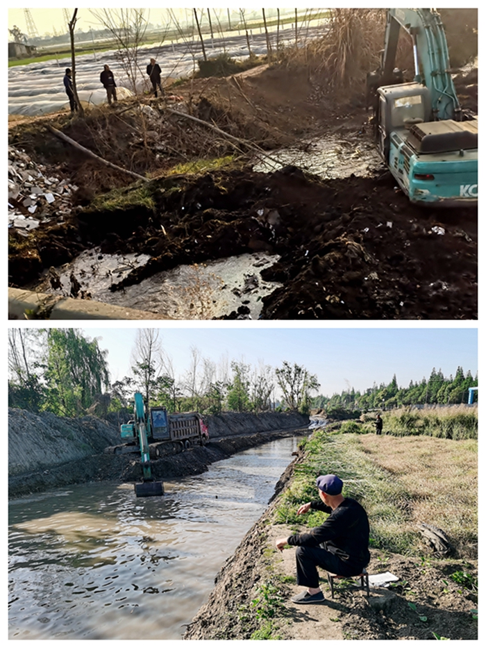 对高坪镇龙潭社区李家堰进行整治清掏前后
