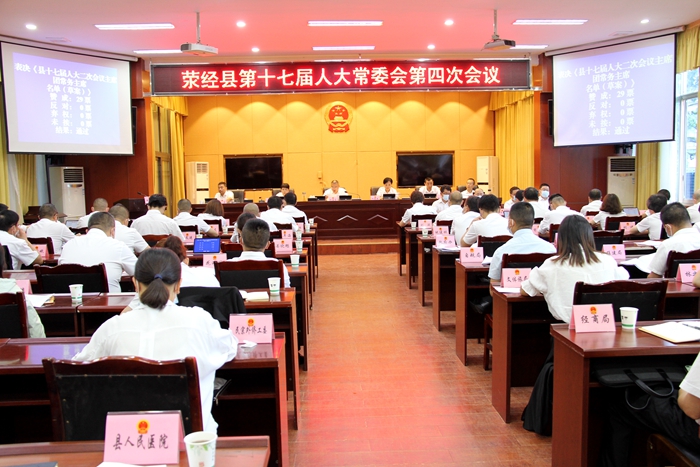“荥经县第十七届人大常委会第四次会议圆满完成各项议程”,县人大常委会主任柯国富主持会议并讲话。此次会议是荥经县人大首次启用无纸化会议和电子表决系统,会议对县人大常委会相关人事任免事项和决议决定(草案)进行了表决,代替了传统的表决方式,大幅提升了会议效率。