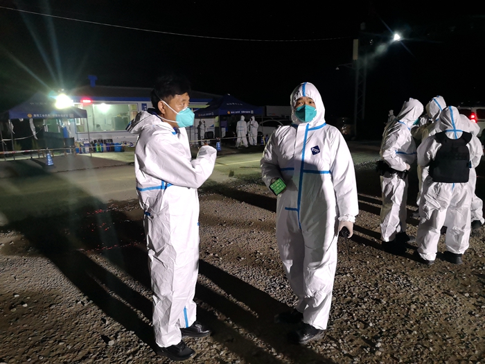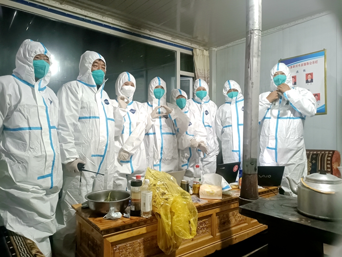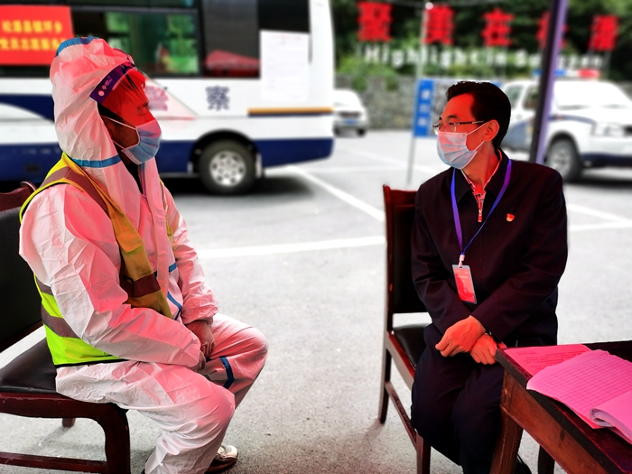 松潘县人大常委会主任一西在松潘县南界防疫检测点陪同“大白”开展志愿服务