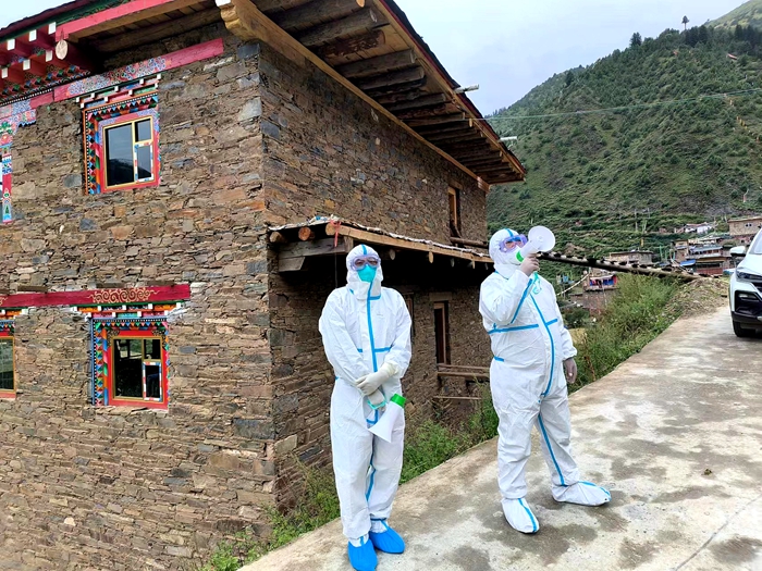 壤塘县人大常委会主任深入岗木达章光村重点封控隔离区,采用藏汉双语开展宣传引导工作
