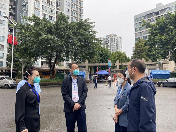 图为市人大常委会主任周霖临到东城绿洲督查疫情防控工作