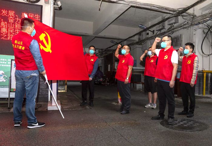 图为船山区人大代表深入百福社区封控区一线宣誓现场