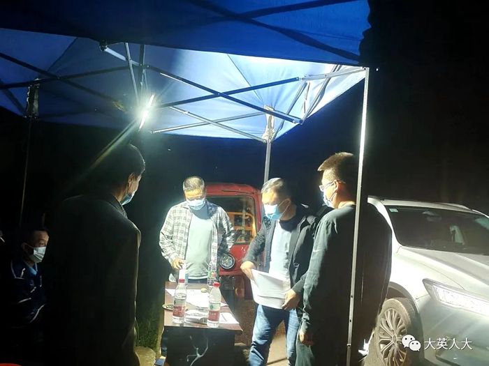 图为大英县人大代表连夜设置核酸检测台面