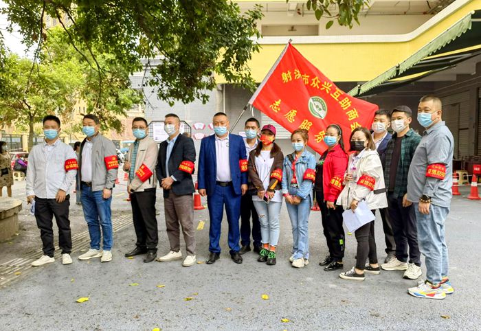 图为射洪市人大代表组织动员商协会会员志愿者参与社区疫情防控