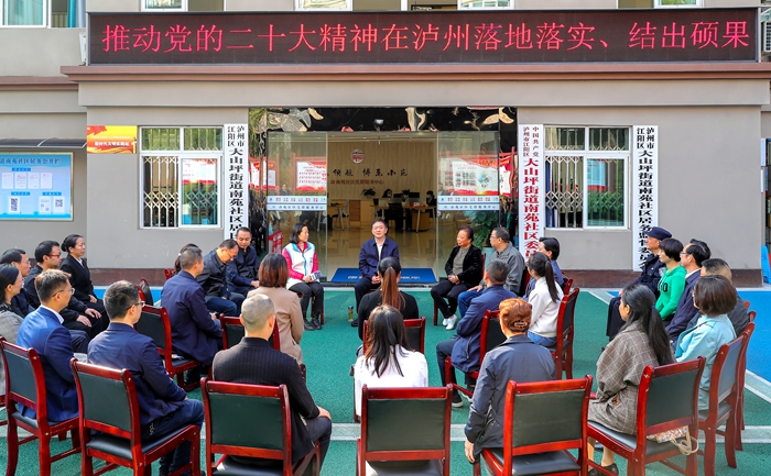 11月1日上午,在泸州市江阳区大山坪街道南苑片区人大代表联络站,一场党的二十大精神宣讲活动变“上学”为“送学”,助推党的二十大精神飞入千家万户。活动中,党的二十大代表、四川省人大代表、泸州市委书记杨林兴作为宣讲人,用深入浅出的讲解、生动精彩的阐释宣讲党的二十大精神,与南苑社区党员代表、人大代表、泸州好人、群众代表互动交流。