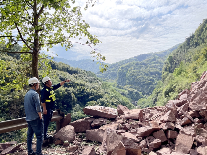龙苍沟镇附鱼路是鱼泉村重要的出行道路,其鹰嘴岩路段长期以来因山体不稳存在滑坡落石的危险。受雨天影响,5月20日该路段又发生大面积垮塌,山上滚落的石头堵住了村民的出行道路,当地群众出行只能绕行鱼秋顶或者走高速出行,鱼秋顶坡陡、弯急、路窄,也很不安全,加之老百姓走高速来回要花费二十元,长此以往会增加很大的出行成本。