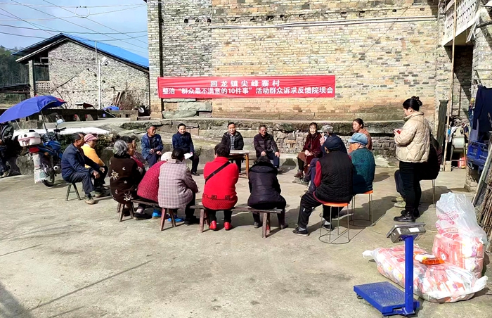 回龙镇尖峰寨村支部书记肖中华组织召开院坝会听取村民意见建议