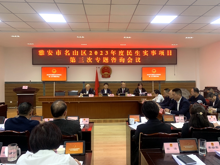 2023年10月30日,名山区人大常委会召开2023年度民生实事项目第三次专题咨询会,对名山区通组公路建设项目推进情况进行咨询。