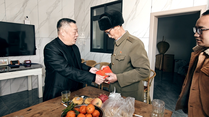 2月1日,兴文县人大常委会副主任李文碧走访慰问抗美援朝老战士刘弟高,与刘弟高及其家属亲切交谈,认真聆听老人参加抗美援朝的事迹,追忆那段充满血与火的峥嵘岁月,详细了解老人身体和生活状况,感谢他为国家和人民作出的重大贡献。并一再叮嘱老人要保重身体,有困难及时反映,党和政府一定会全力帮助解决。