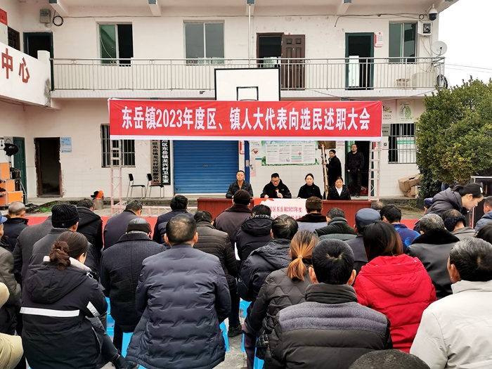 在东岳镇第三选区述职评议会上,区人大代表胡方首先向选民们作述职报告。随后,镇代表张吉现、王亮作为镇第二十届人民代表大会代表向选民进行了述职。同日,在东岳镇辖区的区人大代表冉彬、谢曦,镇人大代表刘显胜、李清平向选民进行了述职。