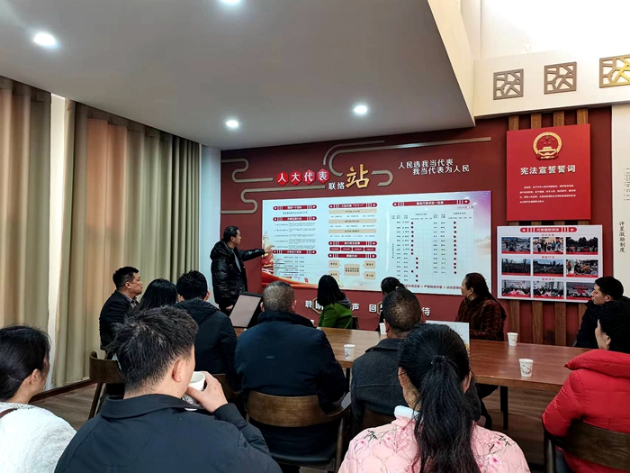 对草坪村基层治理情况初步了解后,代表们一起走进了草坪村人大代表联络站,正式召开“三区共兴”座谈交流会。各个代表依次就坐,结合今天调研的“成果”,开始了热烈的“思维碰撞”。