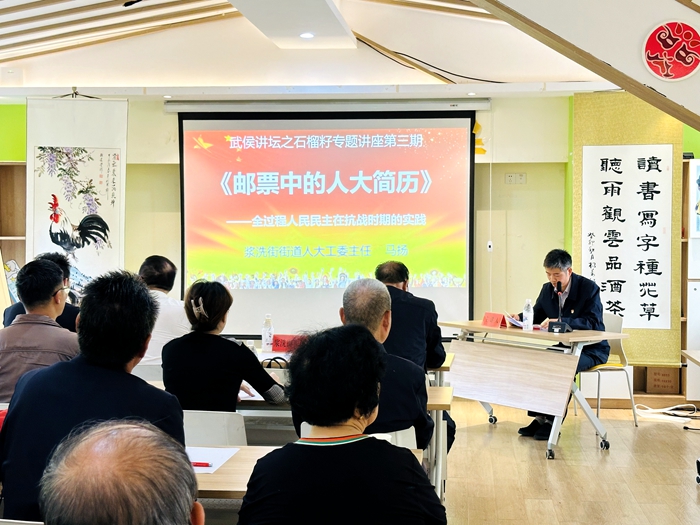 3月30日,成都市武侯区浆洗街街道人大工委在双楠社区人大代表联络站开展“铸魂•2024•清明祭英烈”暨“诸葛讲坛之石榴籽讲座”第三期主题活动,以丰富多彩的“家站点”活动展现新时代人大代表新作为和“一家一示范、一站一特色”。区委统战部、区检察院、成都时代公共法律服务创新与发展中心、西藏黄河诗书画院等联办单位领导、“两代表一委员”、社区党员群众代表等参加。全体与会人员集体来到李家钰革命烈士陵园,瞻仰革命先烈塑像并敬献鲜花,缅怀革命先烈伟绩,共同珍惜来之不易的和平环境和幸福生活。在社区人大代表联络站,浆洗街街道党工委委员、人大工委主任马扬向与会人员详细介绍了《邮票中的人大简历》人大特色邮票展,带领大家再次回顾了先烈们在党的领导下,团结一心共同浴血奋斗,建立人民当家做主的社会主义国家的艰辛历程。同时在西藏黄河诗书画院“川藏文化交融、民族团结互嵌”石榴红主题书画作品展前,与会人员感受到了民族文化交流之花的绚丽灿烂, 也体验到了铸牢中华民族共同体意识活动带给人民的获得感、幸福感。西藏黄河诗书画院党支部书记、院长,原西藏自治区政法委副书记卫建堂作了《大力宏扬老西藏精神,增进民族大团结》讲座,讲述了老一代援藏干部发挥特别能吃苦、特别能战斗、特别能忍耐、特别能团结、特别能奉献的“老西藏精神” 的动人事迹,通过西藏政法干部维护国家统一、社会和谐稳定和促进民族团结进步的生动故事,表达了对西藏第二故乡的深情和无悔付出,让与会人员备受感动和启发,纷纷表示要传承发扬“老西藏精神”,加强民族团结,促进各民族交往交流交融,共建各民族共有精神家园和互嵌融居温馨家园。